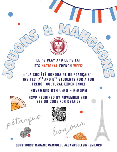 The French Honor Society of Mercy High School invites 7th and 8th grade students to join the French Honor Society of Mercy High School in the 2025 celebration of National French Week!