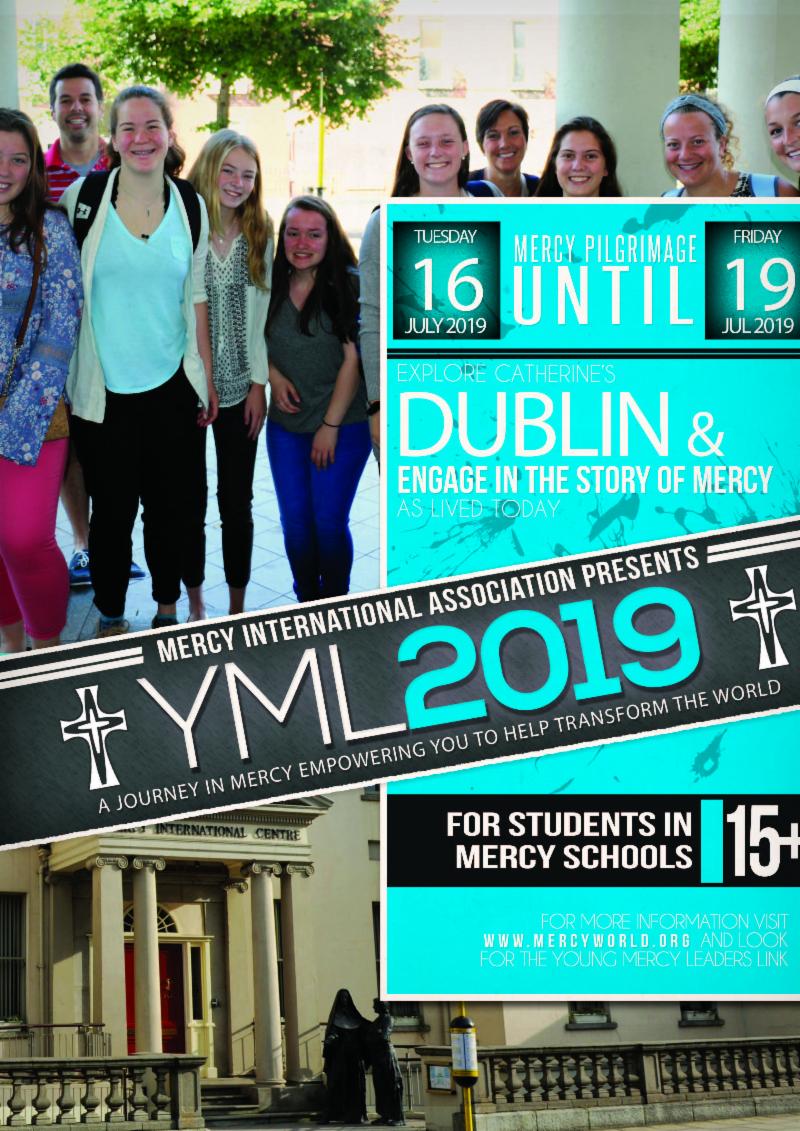 In 2019, the Young Mercy Leaders Pilgrimage for secondary school students will be held again in Dublin, Ireland at Mercy International Centre Tuesday, July 16th through Friday, July 19th, 2019.
