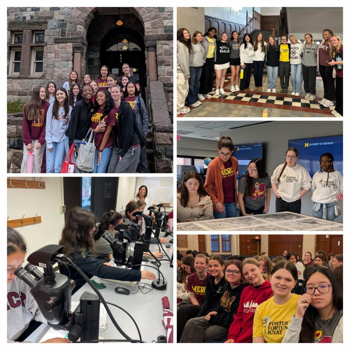 Mercy Latin students attended the 12th annual Copley Latin Day at the University of Michigan, where they explored the theme Classics and the Natural World. Highlights of the day included visits to the Kelsey Museum of Archaeology, the university's papyrology collection, and the map library, which offered students a unique look at how the ancient world documented and understood nature. Students also participated in interactive sessions led by professors and doctoral students, exploring connections between classical studies, science, and the environment. The day was a reminder of how the study of Latin and the ancient world continues to enrich modern learning!