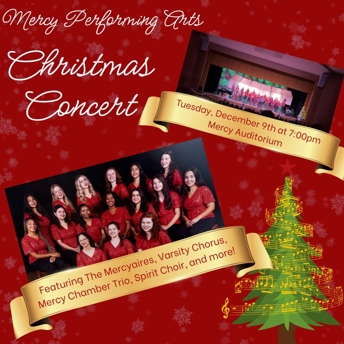 Mercy Performing Arts proudly presents the Annual Christmas Concert featuring the Mercyaires, Varsity Chorus, Chamber Trio, Spirit Choir and more sounds of the season!