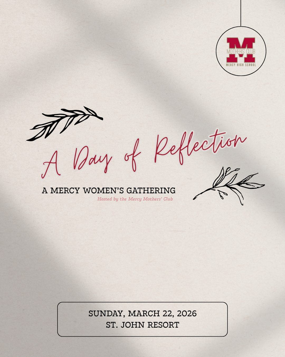 The Mercy Mother's Club invites students and the special women in their lives — mothers, grandmothers, aunts, guardians, mentors, and loved ones — to a meaningful Day of Reflection on Sunday, March 22, 2026, held at St. John Resort from 11:00am - 4:00pm.