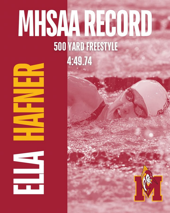 Marlin star swimmer Ella Hafner '28 broke the MHSAA D2 Record in the 500-yard freestyle with a time of 4:49.74 at States.